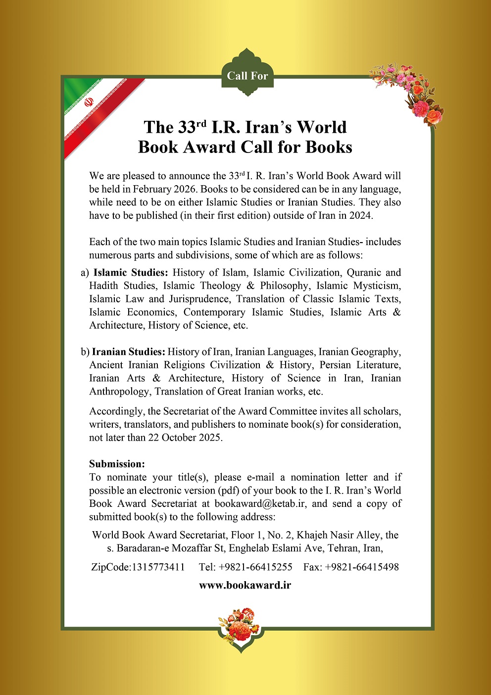 فراخوان جایزه جهانی کتاب سال جمهوری اسلامی ایران
